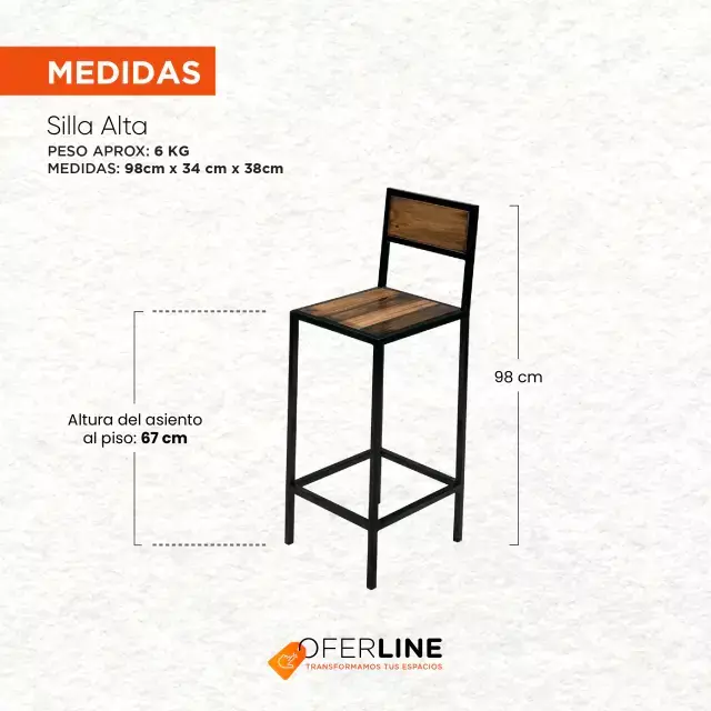 Banqueta cervecera estructura reforzada de hierro y madera maciza laqueada.