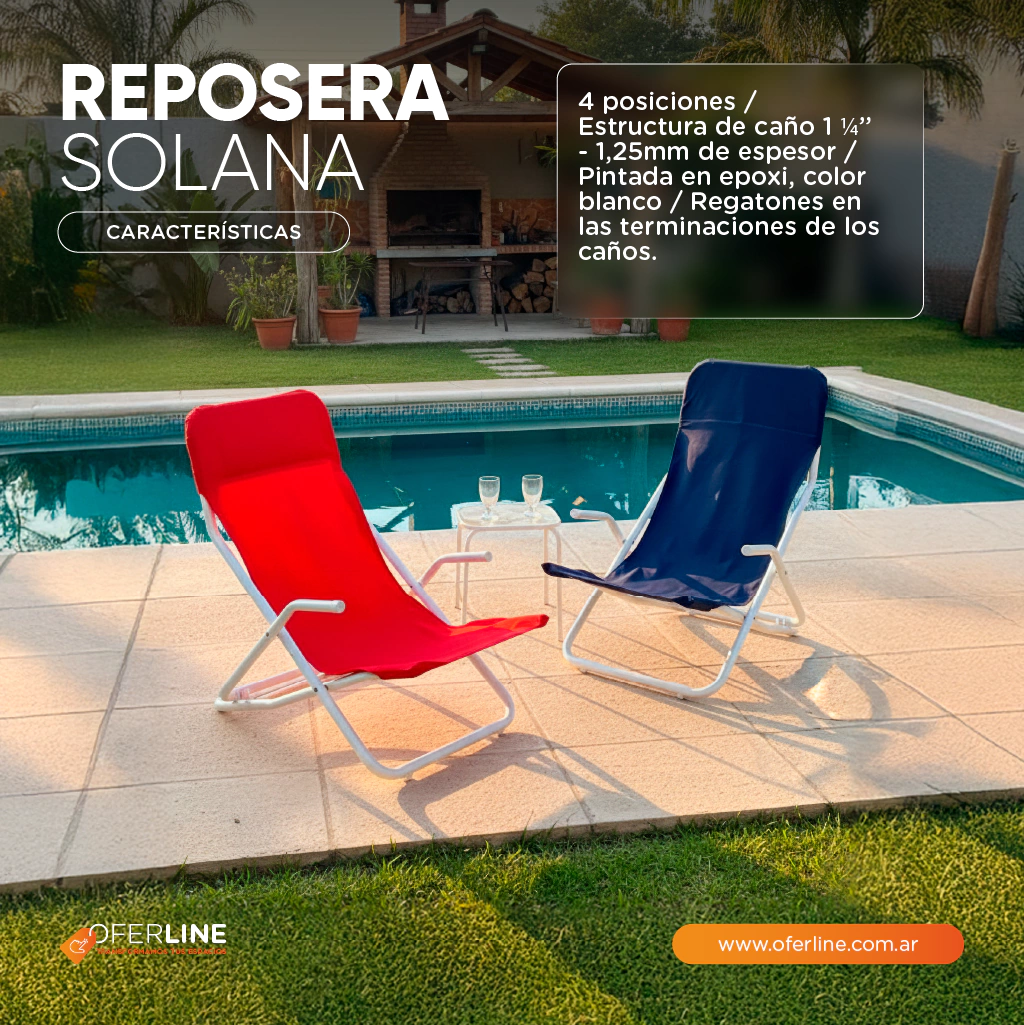 Reposera de caño 1 1/4" pintada con epoxi color blanco y regatones en las terminaciones. Plegable y con 4 posiciones