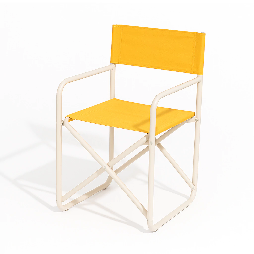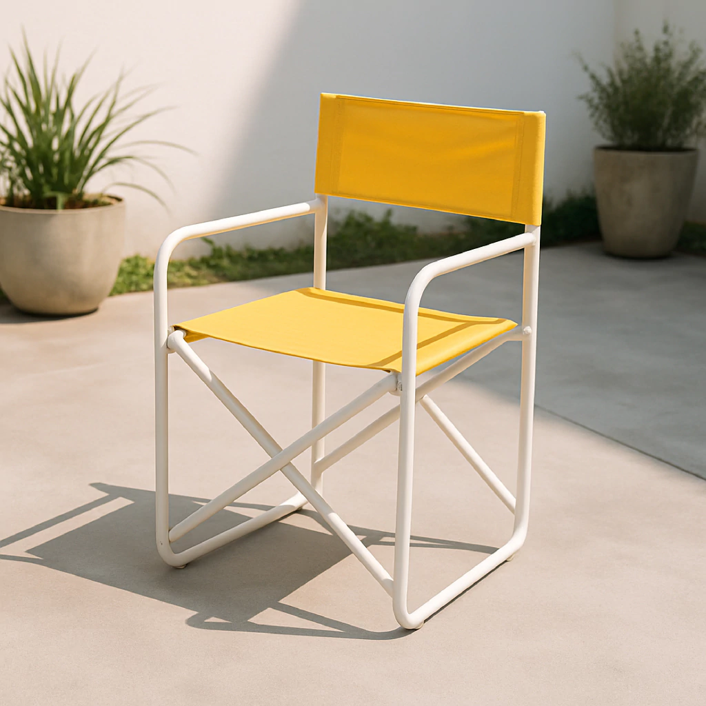Sillón Director plegable, reforzado, caño redondo de 1" de diámetro y 0,90mm de espesor pintado en epoxi color blanco, con tratamiento previo de fosfatizado para uso exterior.