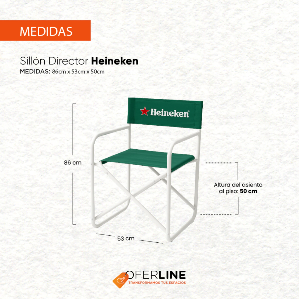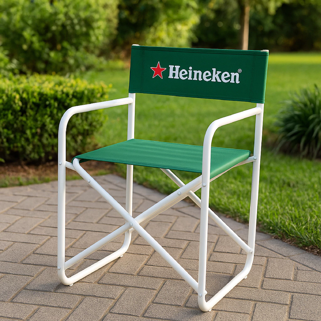 Sillón director plegable, reforzado, caño redondo de 1" de diámetro y 0,90mm de espesor pintado en epoxi color blanco, con tratamiento previo de fosfatizado para uso exterior.