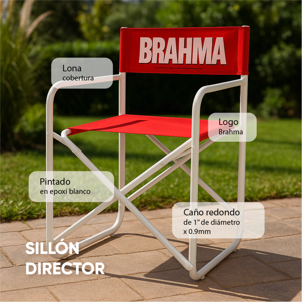 Sillón Director plegable, reforzado, caño redondo de 1" de diámetro y 0,90mm de espesor pintado en epoxi color blanco, con tratamiento previo de fosfatizado para uso exterior.